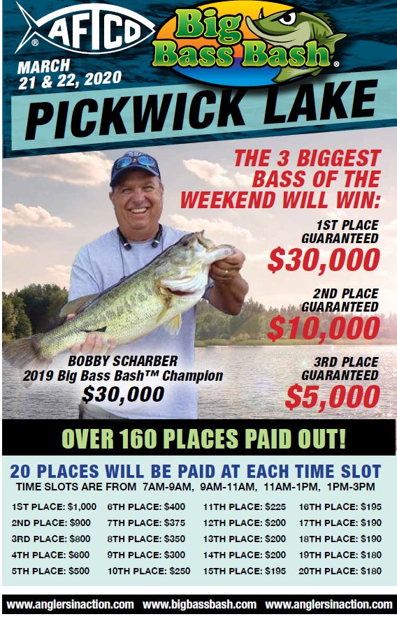 The 2020 AFTCO Big Bass Bash at Pickwick/Wilson Lake is coming up on March 21-22, 2020. All anglers that enter by Monday, March 9, will be eligible to win 1 of 8 $250 early bird cash prizes.