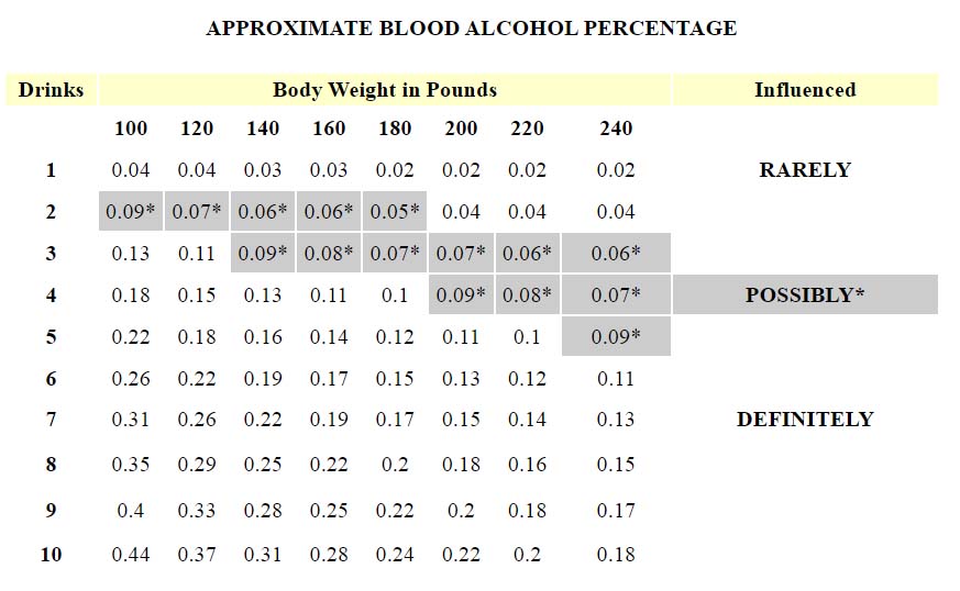 APPROXIMATE BLOOD ALCOHOL PERCENTAGE