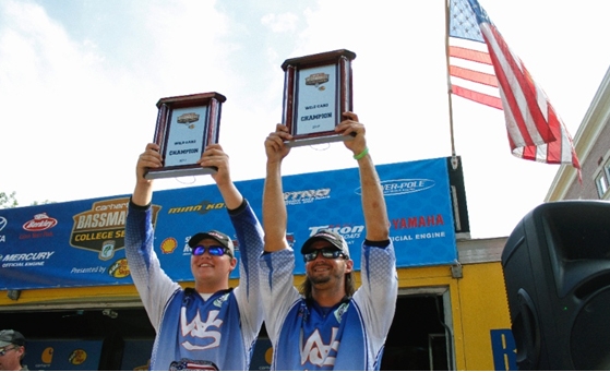 Joshua Butts (right) and Reid Conner of Wallace State-Hanceville win the Carhartt Bassmaster College Series Wild Card presented by Bass Pro Shops on Lay Lake with a three-day total weight of 40 pounds, 11 ounces.